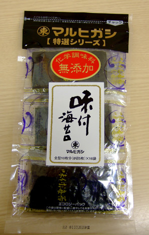 和田珍味本店にて販売しております、マルヒガシの「味付海苔」です。