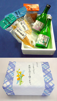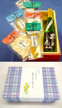こちらは、弊社珍味と冷酒を2本セットにした、