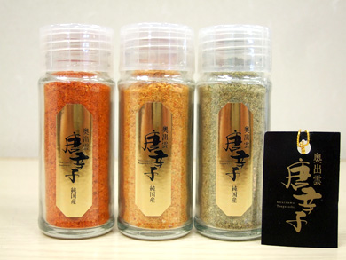 奥出雲一味唐辛子(赤、黄、緑) 15g 550円 和田珍味本店で販売しております。